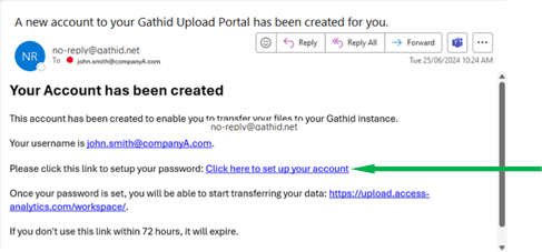 - To start setting up your account, in the email click on the hyperlink Click here to set up your account