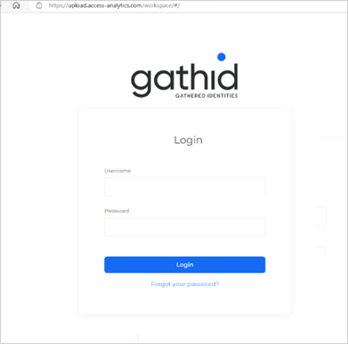 - A browser window will appear to the Login screen of the Gathid upload portal as displayed below