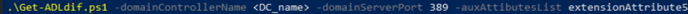 .\Get-ADLdif.ps1 -domainControllerName <DC_name> -domainServerPort 389 -auxAttributesList extensionAttribute1,extensionAttribute2