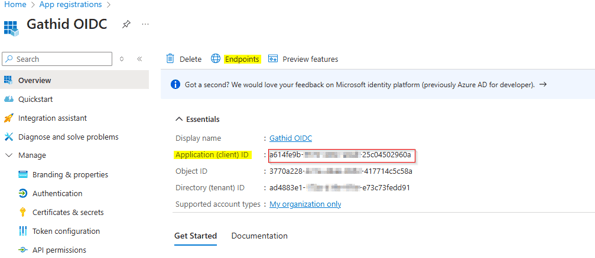 2.8 Copy the Application (client) ID GUID and store it for future use.