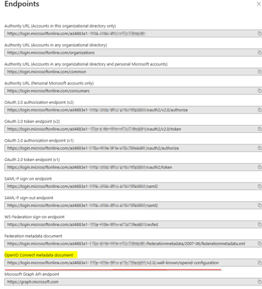 From the modal that pops up, copy the OpenID Connect metadata document URL and store it for future use.