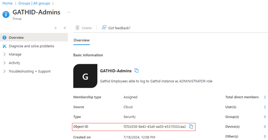 - Create the Entra ID Group(s) to be used for Gathid Roles