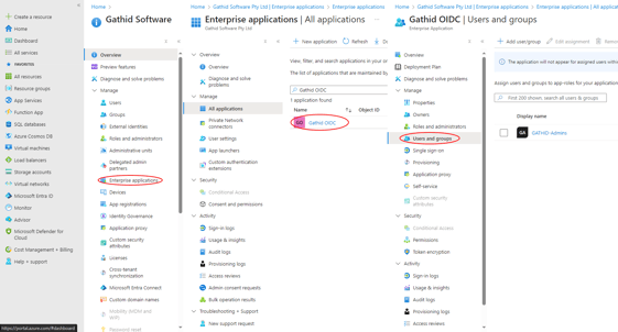 From the Entra ID Home page, navigate to Enterprise Applications, locate your Gathid Application, then select Users and Groups from under the Manage blade on the left-hand-side.
